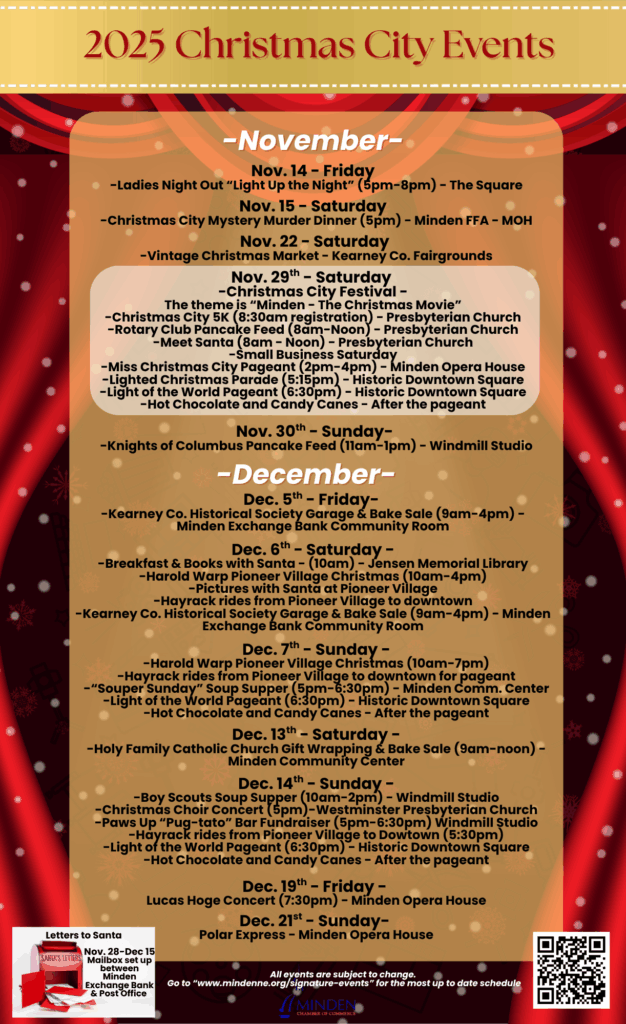 We invite any and all to our great town to experience the holiday season in a very unique way. There are events for all ages, so come check us out.